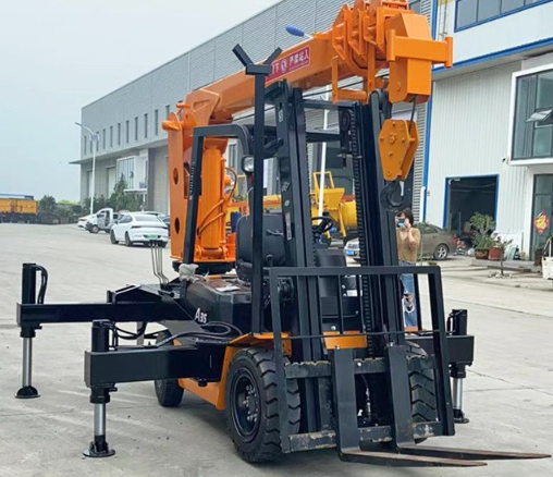This equipment does not require an additional power source, is driven by the forklift hydraulic system, and is easy to install and operate. It can not only complete conventional cargo forking, but also realize high-altitude material hoisting, equipment relocation, container loading and unloading, etc. It is an efficient auxiliary equipment in logistics, warehousing, infrastructure, municipal and other fields