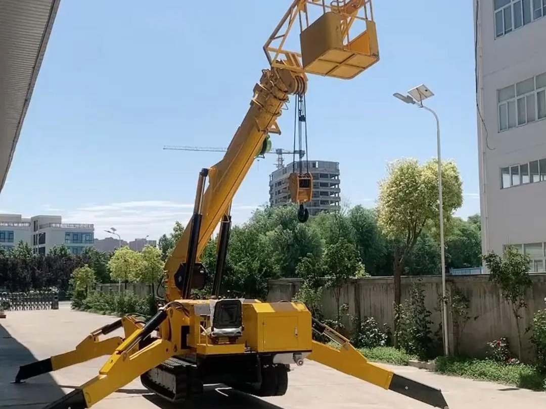 Spider cranes are mainly used in narrow areas where large cranes cannot be deployed. It can be driven by gasoline or 380V motor and can achieve wireless remote control operation; Equipped with a work basket, it can be used as a small aerial work vehicle.